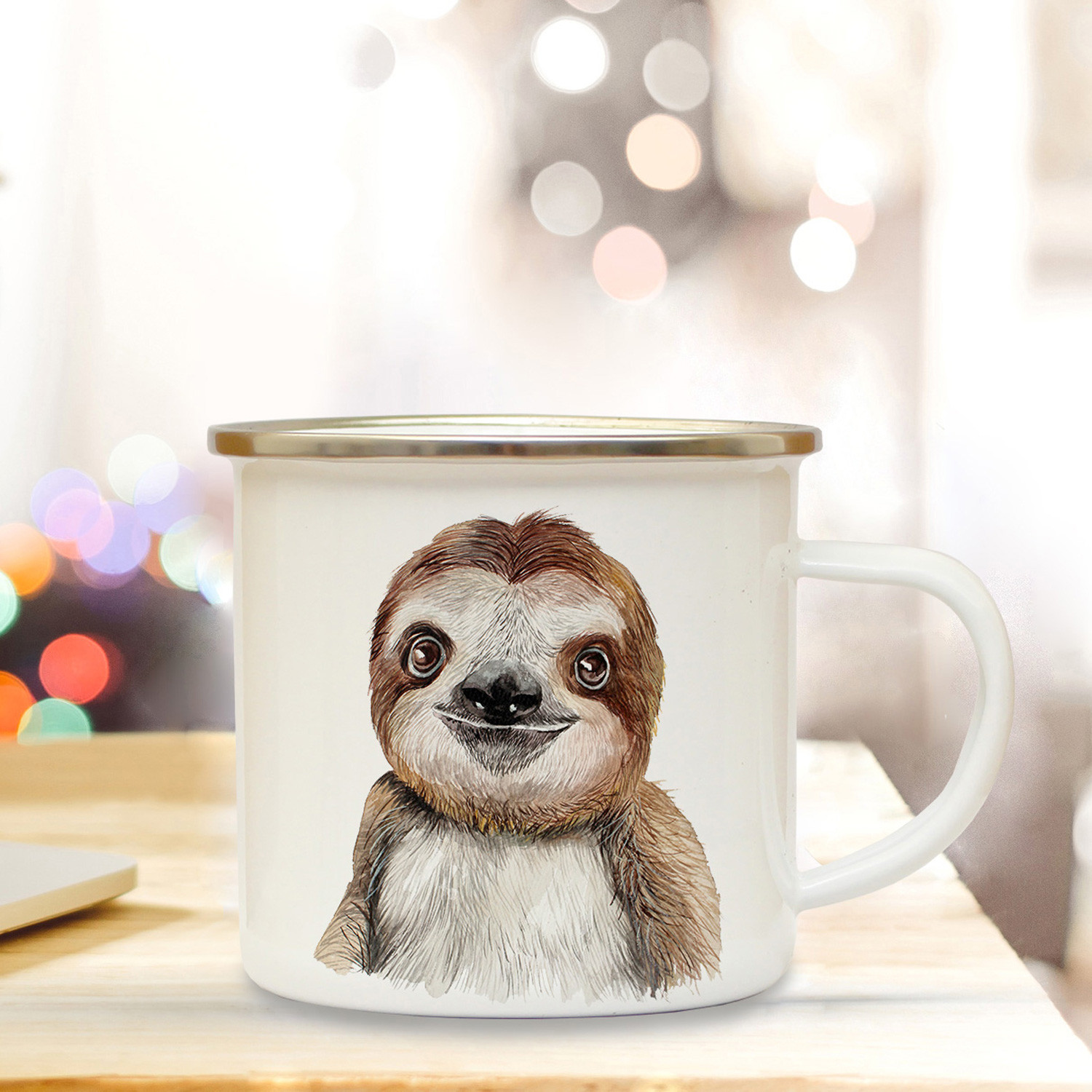 Emaille Tasse mit Tier Motiv Faultier Campingtasse Campingbecher eb214