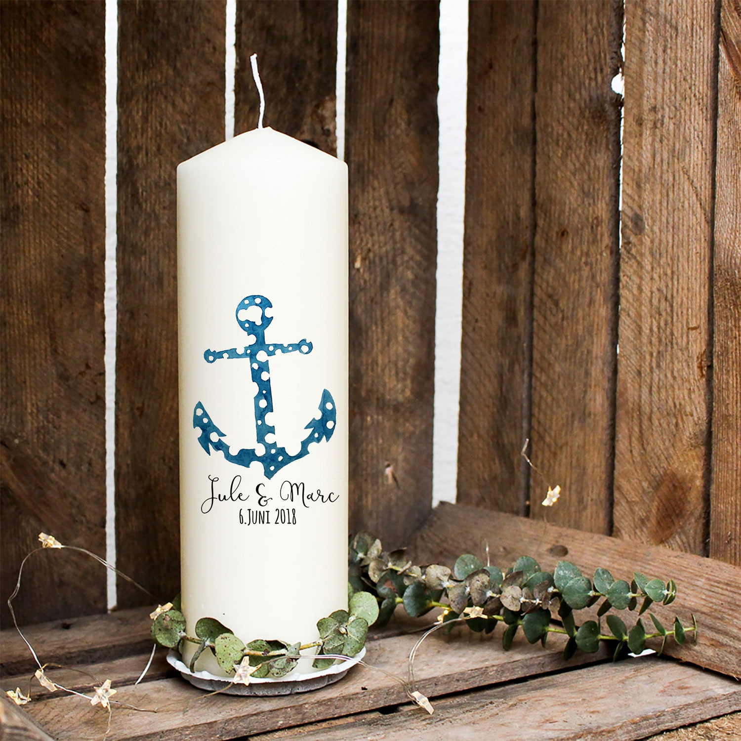 Hochzeitskerze Kerze zur Hochzeit Trauung Traukerze mit Anker Wunschnamen & Datum wk8