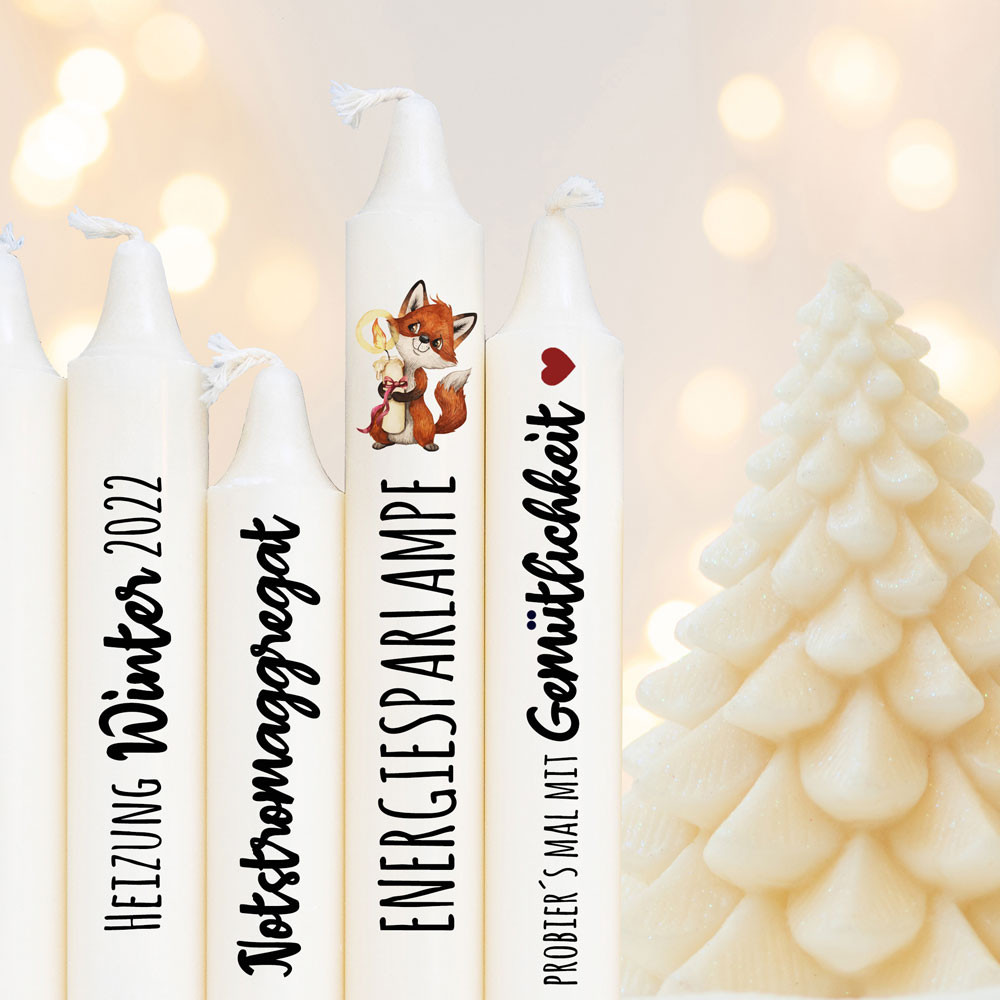 Geliefert werden dir unsere Kerzensticker auf einem A4 Bogen, dieser reicht je nach Gestaltung für 20-40 Kerzen.