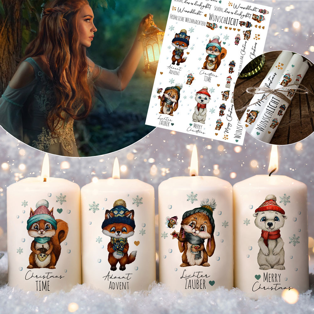 Kerzensticker Kerzentattoos Tattoofolie Weihnachten Advent Adventskerzen für Kerzen oder Keramik A4 Bogen DIY Stickerbogen für bis zu 40 Kerzen kst27