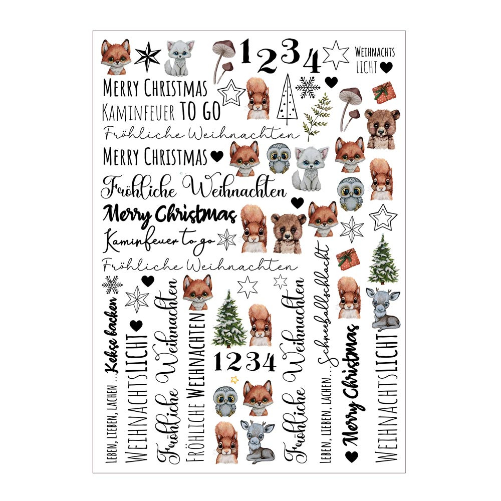 Kerzensticker Kerzentattoos Tattoofolie Weihnachten Winter Tiere Waldtiere für Kerzen oder Keramik A4 Bogen DIY Stickerbogen kst102