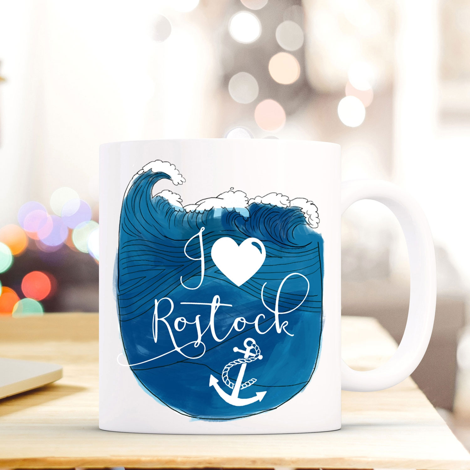 Maritime Tasse Becher Kaffeetasse mit Meer & Anker Kaffeebecher Geschenk mit Motto Spruch I love Rostock ts665