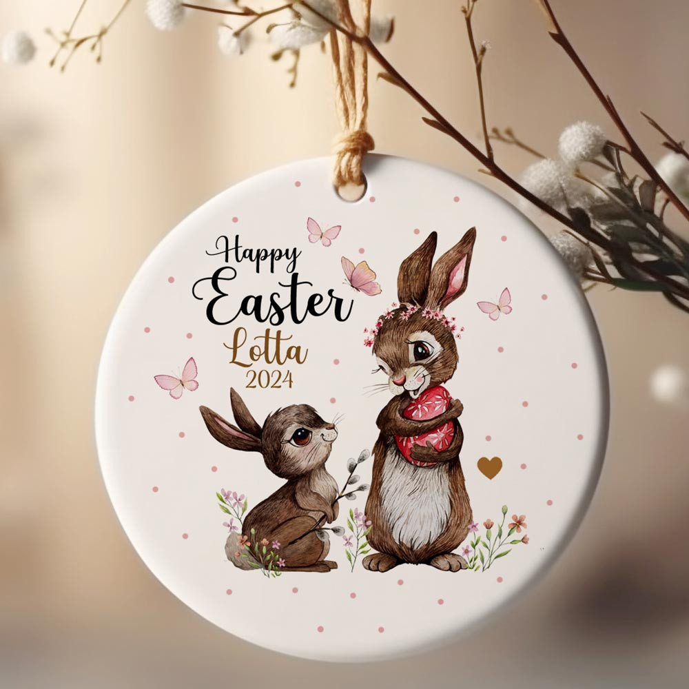 Osteranhänger Osterschmuck mit Häschen Hase Bunny Osterei Ostereier personalisiert Happy Easter ornaments Ostern Geschenk eo2