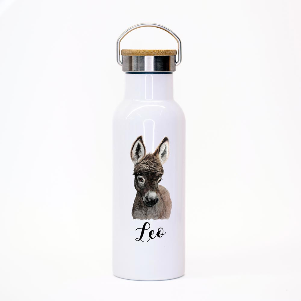 Süße Thermosflasche in weiß mit Esel Motiv & Wunschname bedruckt tbd17