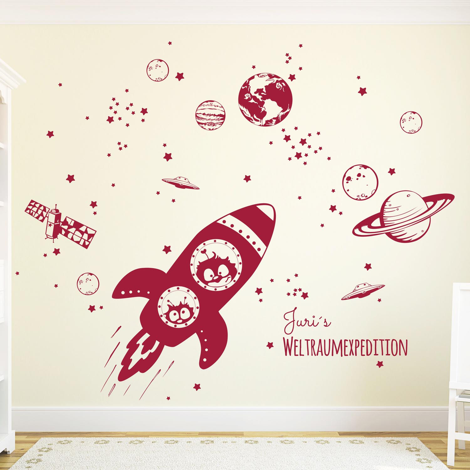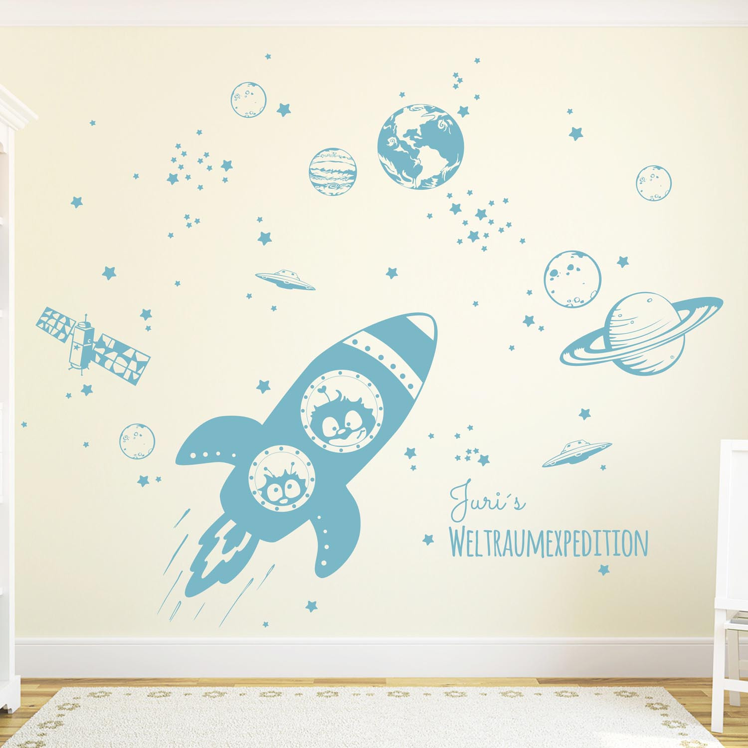 Wandtattoo Wandaufkleber Rakete Raumschiff mit Yuri und Neil im Weltall Weltraum M1653