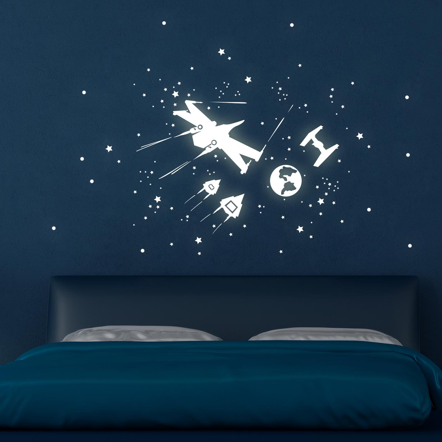 Wandtattoo Sternenflotte Raumschiffe Sterne Weltall Weltraum Leuchtsticker fluoreszierend M1747