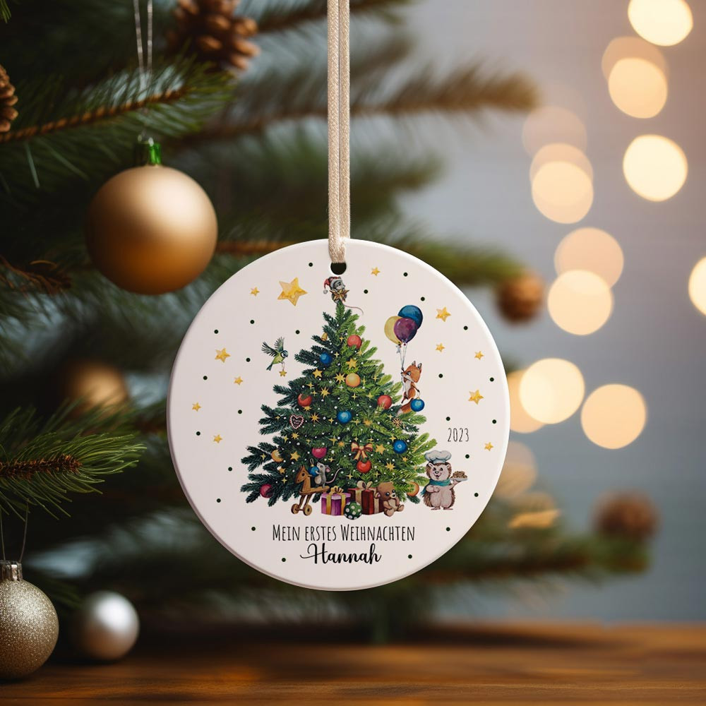 Weihnachtskugel Weihnachtsschmuck Keramik Baumanhänger personalisiert Mein erstes Weihnachten Namen Wunschname Tannenbaum Weihnachtsbaum Tiere Baumkugel wkp34